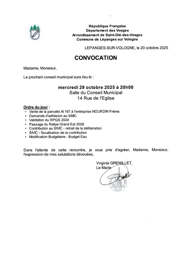 à la mairie de Lépanges chaque vendredi matin entre 9 h et 12h.